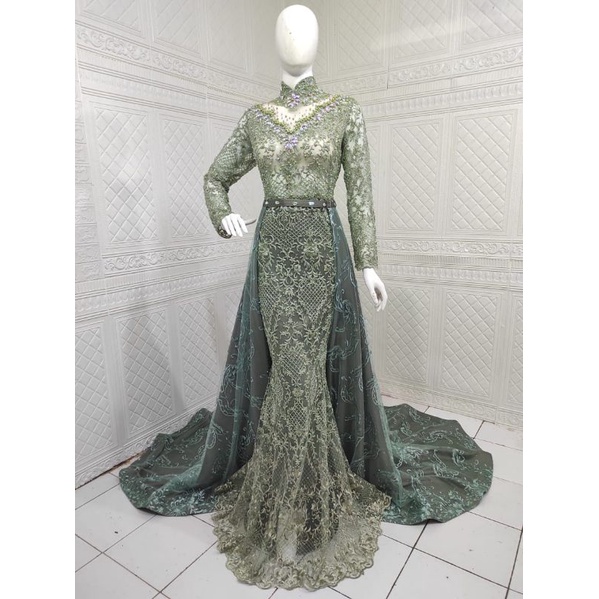 Gaun pengantin slim duyung sage green gown slim duyung hijau sage. 012 3386769 Salmee 017 6952396. Gaun pengantin hijau sage hijau mint 1 kebaya pengantin wedding.
